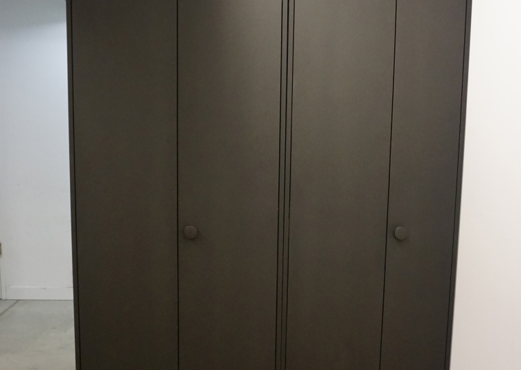 Da die Schränke mobil sind und auf Schwerlastrollen stehen, mussten wir zusätzliche Gewichtsplatten im hinteren Teil des Schranks einbauen. Die Gewichtsplatten verhindern das kippen des Schranks im geöffneten Zustand und wenn alle Auszüge voll ausgezogen sind.