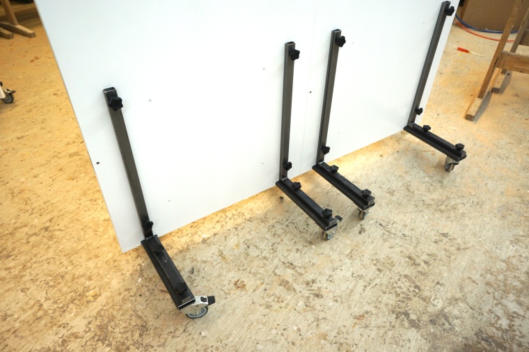 Ein Kunde der einen Pop-Up Store eröffnen durfte, ist auf der Suche nach einer platzsparenden Lösung zu uns gekommen. Nach kurzer Entwicklungszeit von uns, konnten wir Ihm unsere Lösung präsentieren. Er war auf Anhieb begeistert und wir durften den Auftrag ausführen. Die Wände bestehen aus einer beschichteten Leichtbauplatte in die wir Aufhängeschienen eingefräst haben. In die Schienen kann man Konsolen einhängen und Tablare in der gewünschten Höhe anbringen. Die Wände lassen sich mittels stirnseitig eingefräster Verbindung zu einer kompletten Wand verbinden. Dank den demontablen Rollen/Stützen kann das ganze platzsparend eingelagert oder transportiert werden.